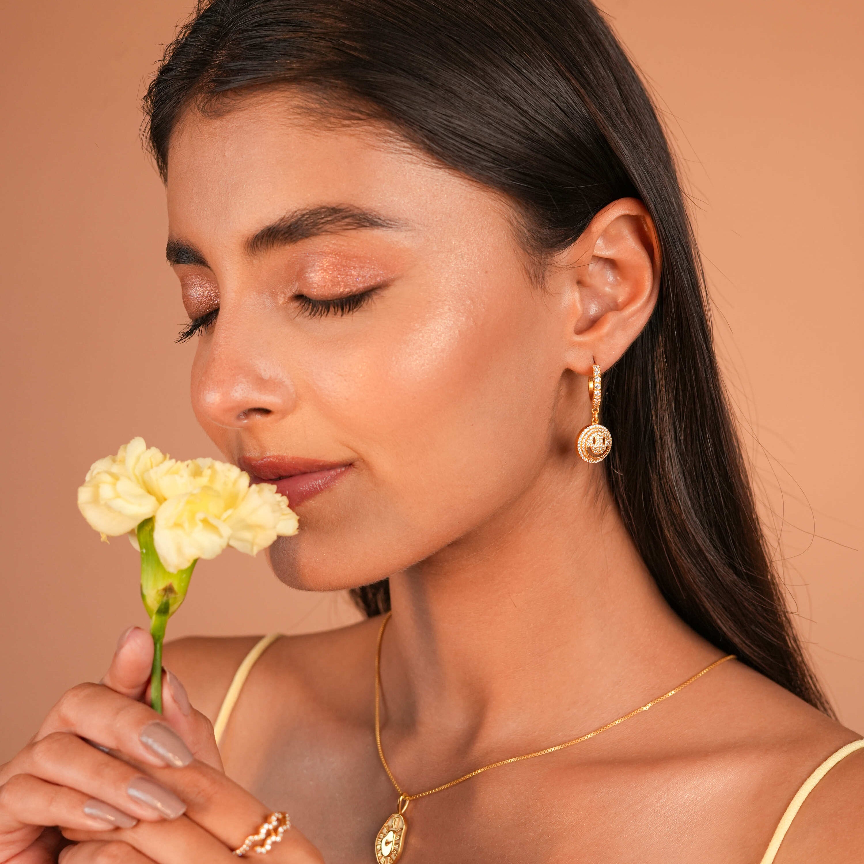Enamel Box Studded Hoops Made of Fine 925 Silver