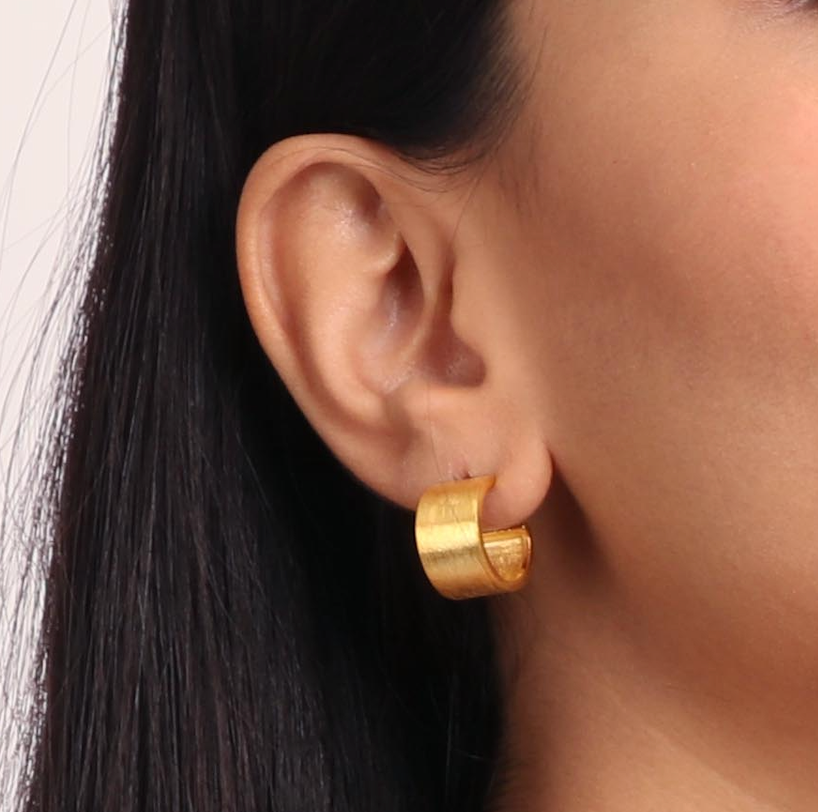 The versatile character of these gold hoop style earrings makes them easy to style for almost any occasion. A great match for your evening gowns and also traditional occasion, it is perfect for both.