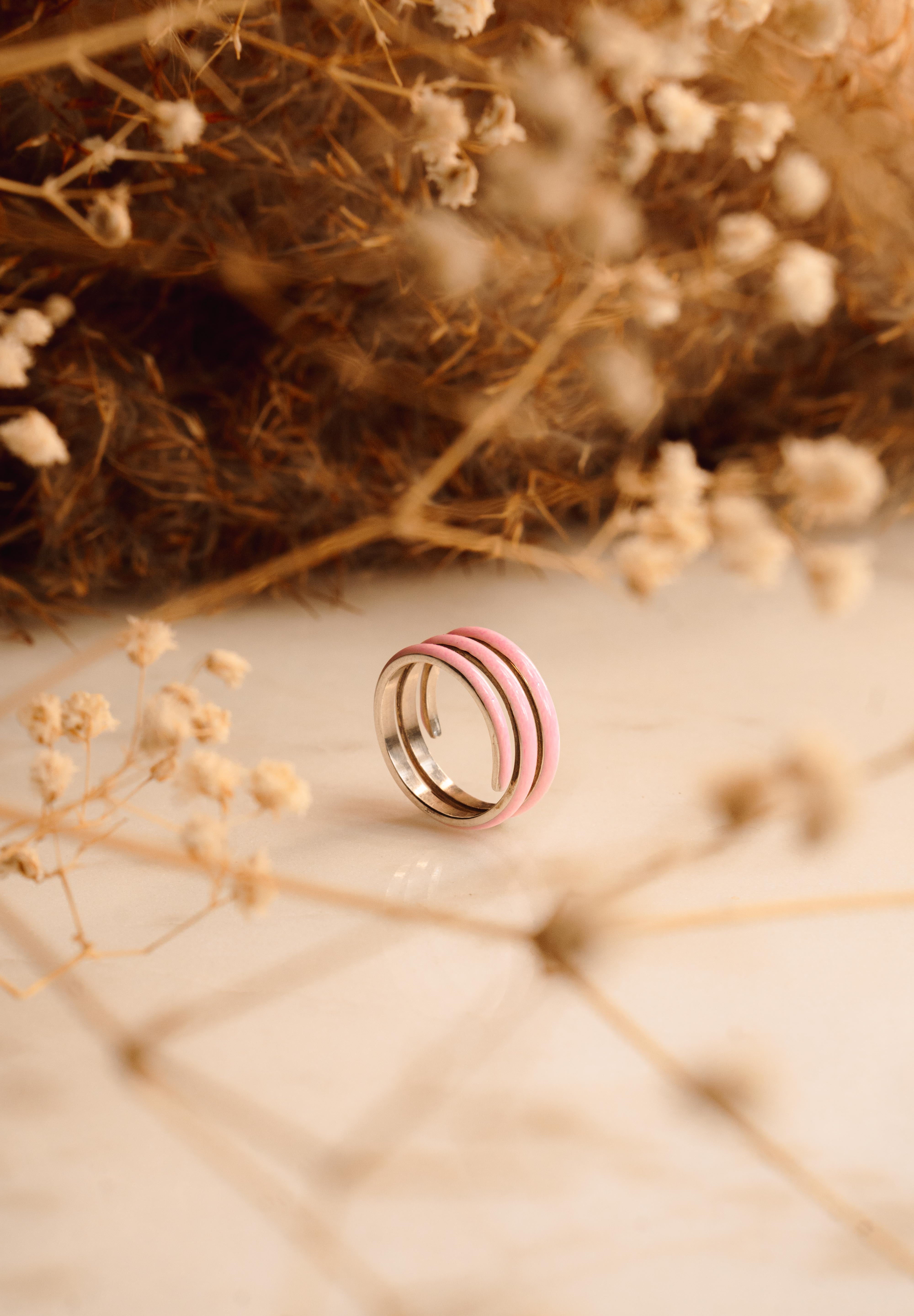 Pink Enamel Twirl Ring