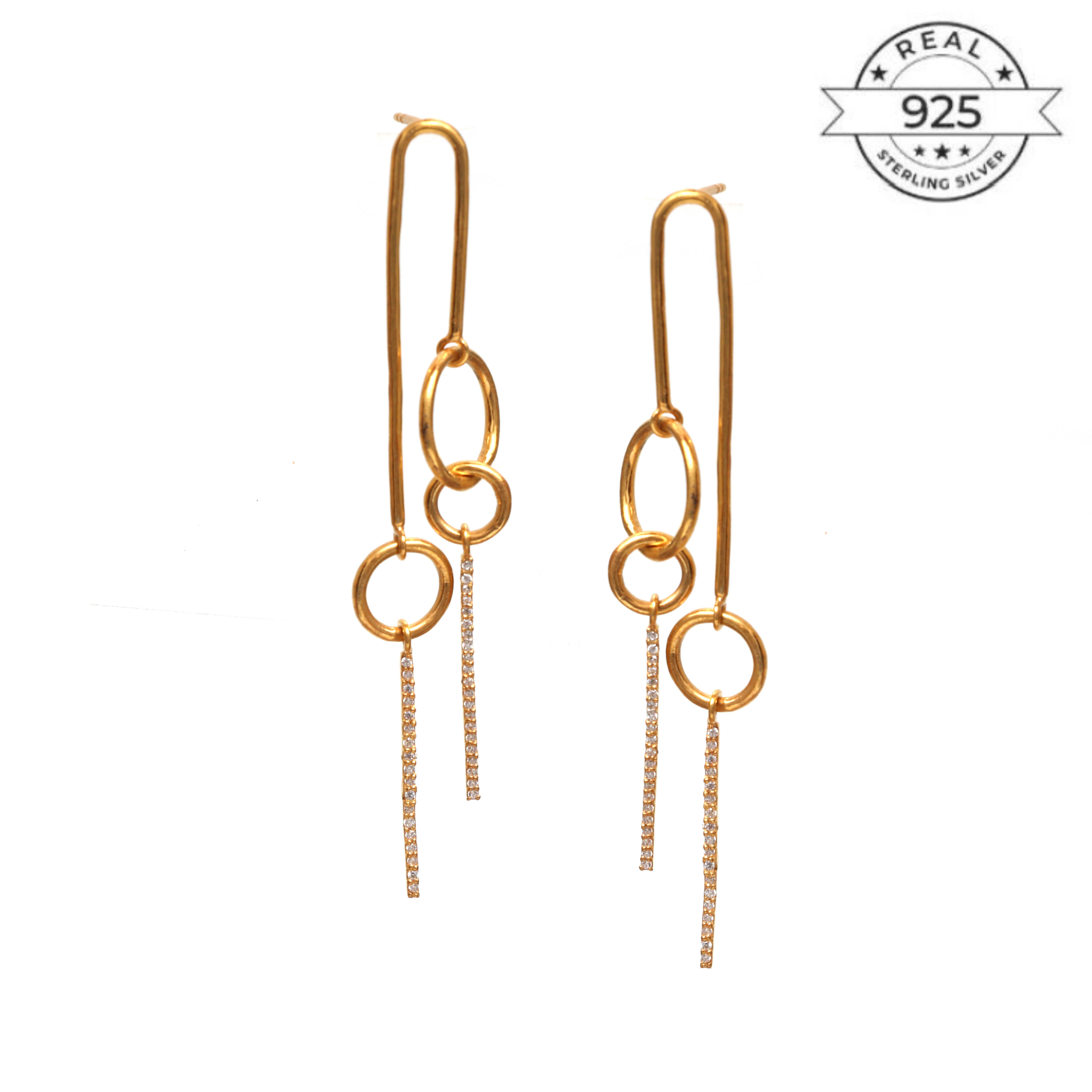All that glitters is gold. These earrings are a true example of this famous phrase. These Dainty earrings have an attractive hanging element that gives this piece length and bling. Keep Shining!