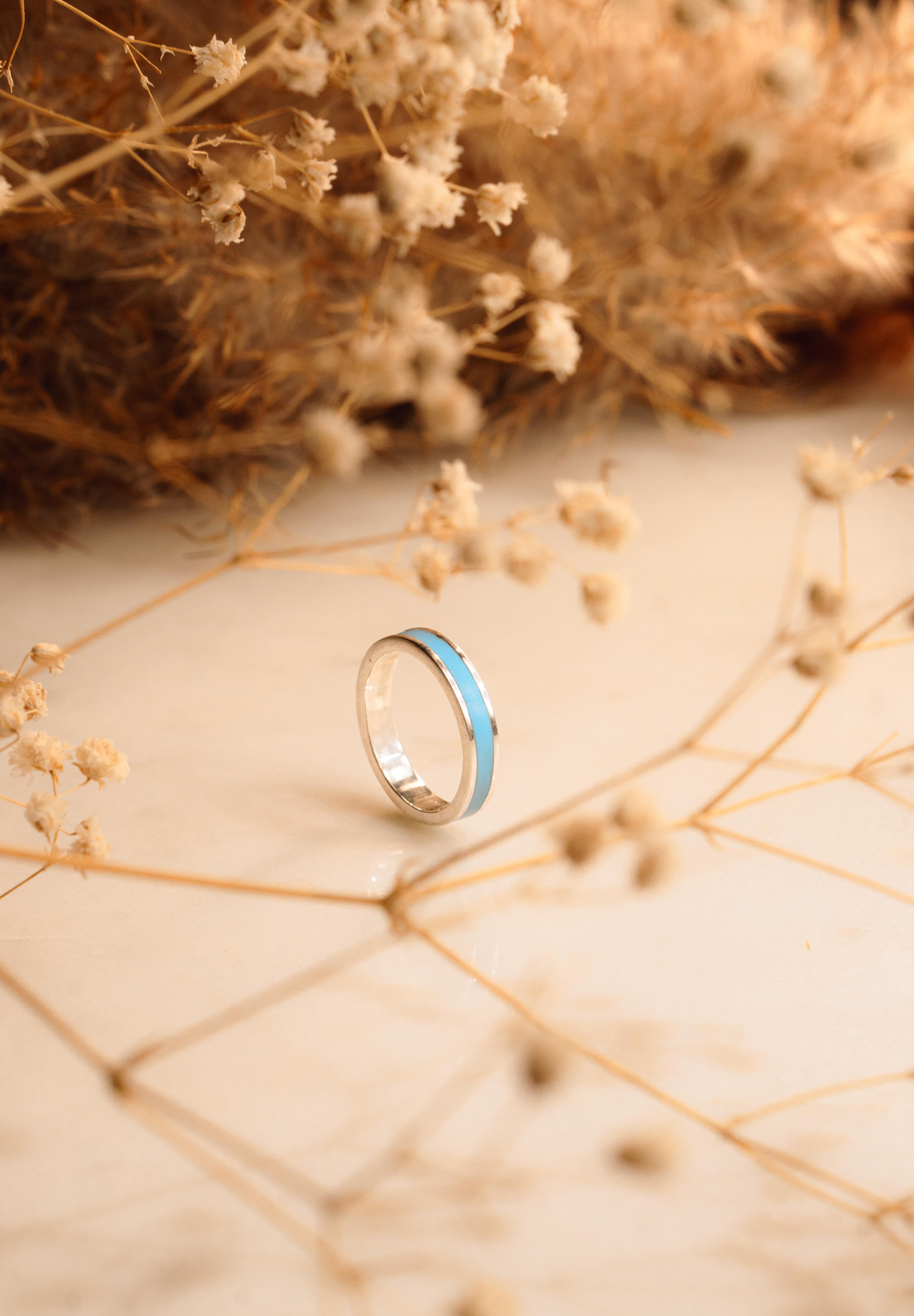 This 925 sterling silver band ring features a smooth enamel finish in blue colour. Designed for simplicity and elegance, they add a subtle pop of colour to your outfit. Perfect for everyday wear or stacking, these rings offer a modern, minimal look while maintaining durability and style.