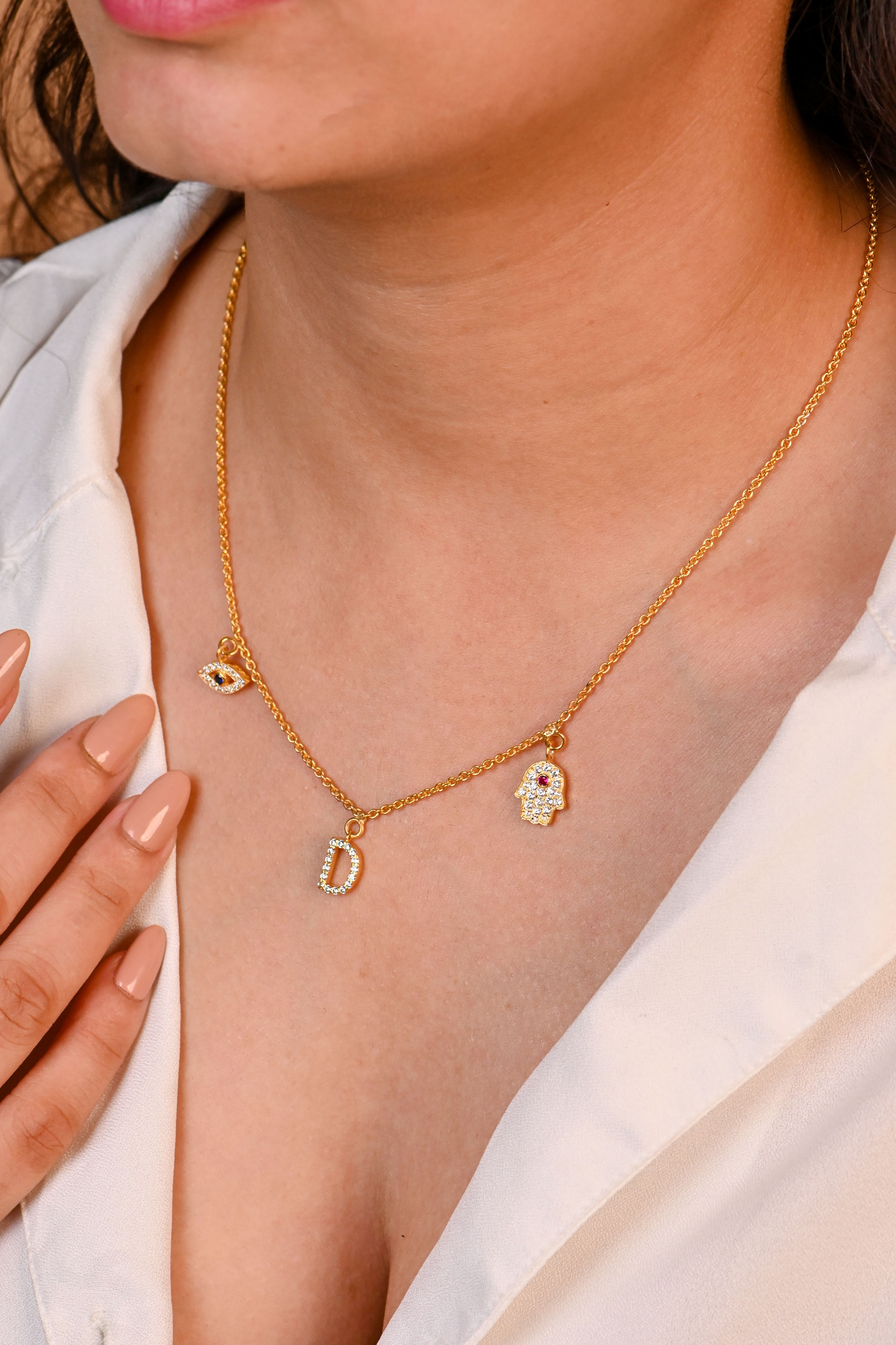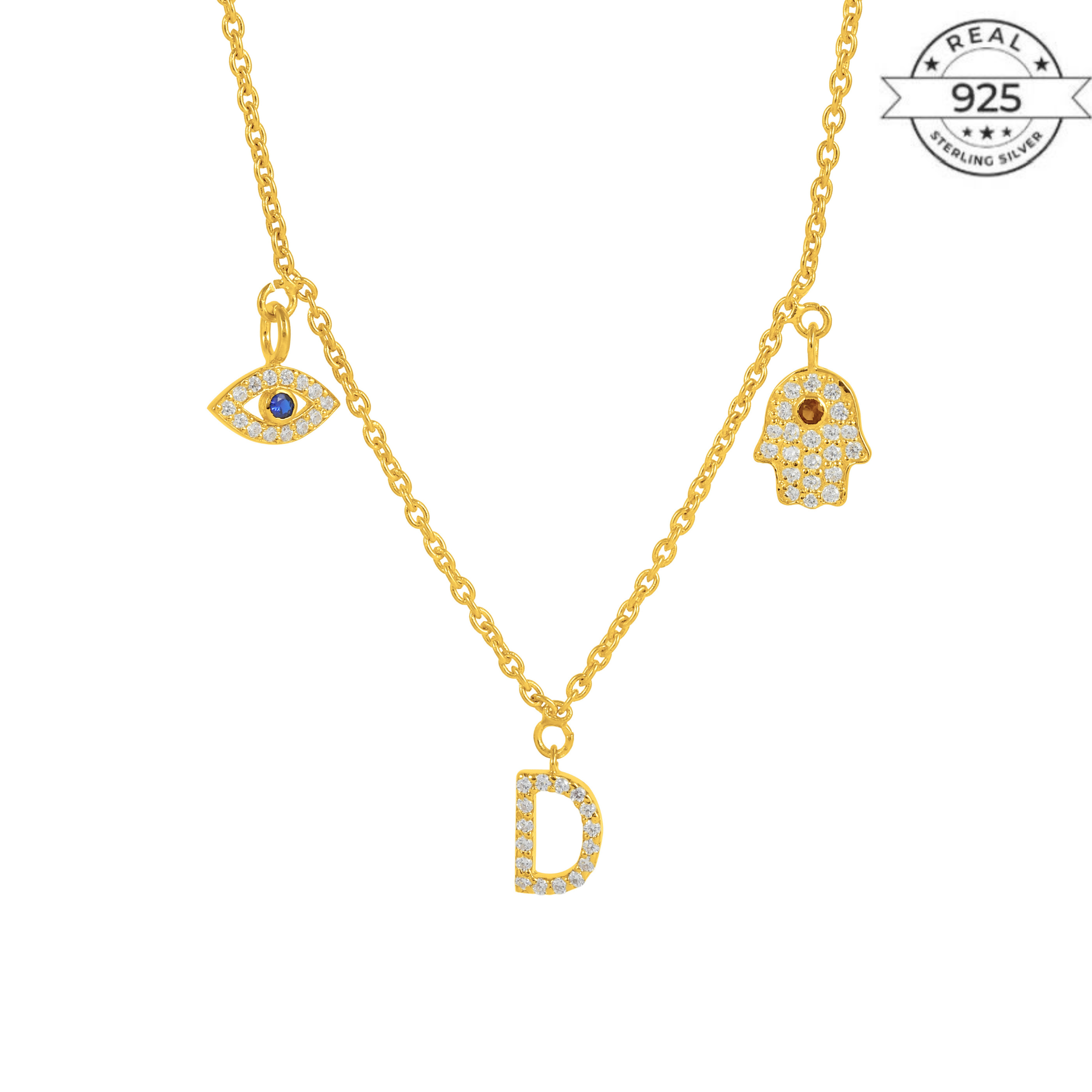 Evil Eye & Hamsa Necklace with Initial Pendant Made of Fine 925 Silver