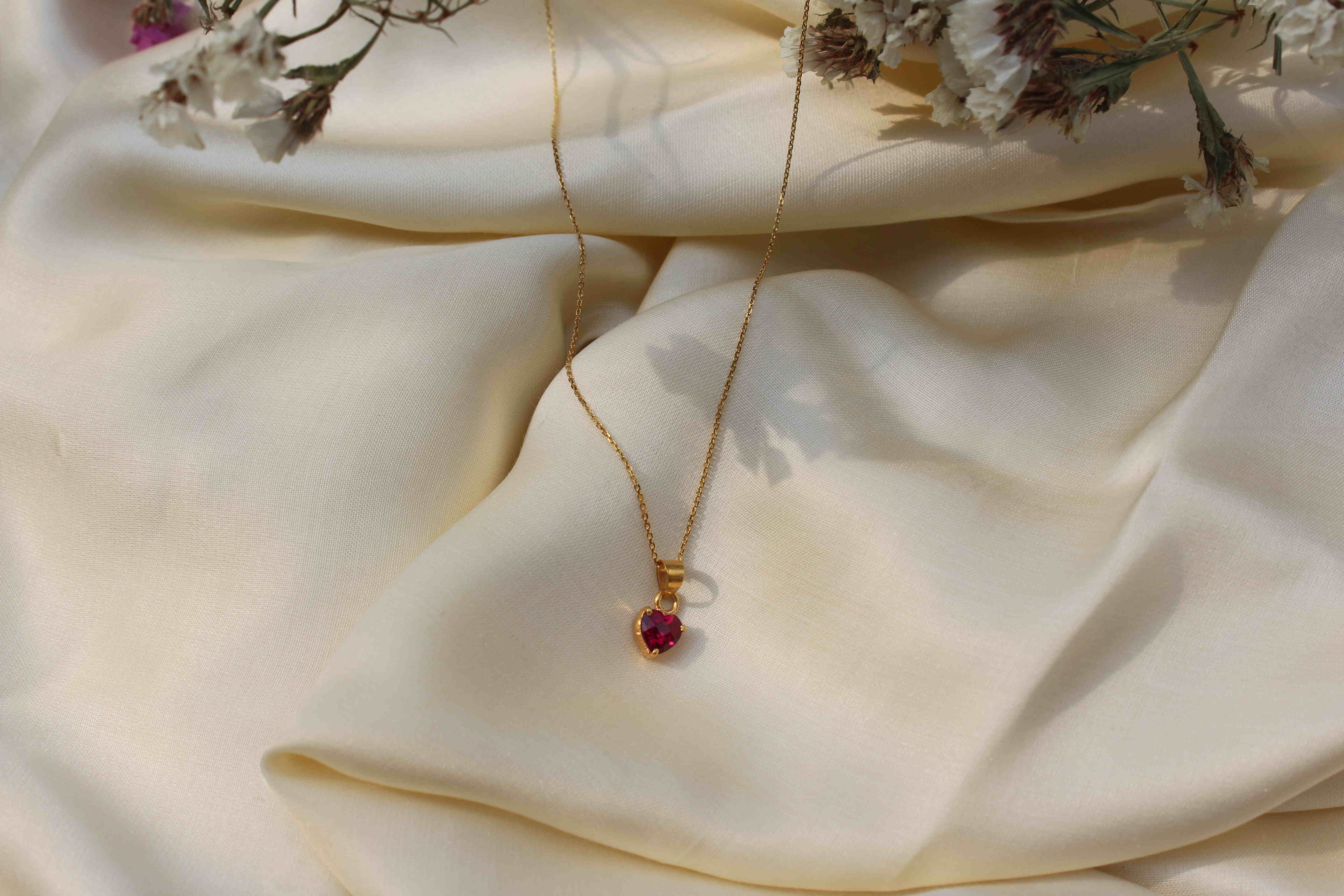 July born girls, this beauty is handcrafted for you! This heart shaped ruby pendant is all set to transform all your looks. A minimal yet chic design this one is perfect when you want to add a pop of colour to your stack!