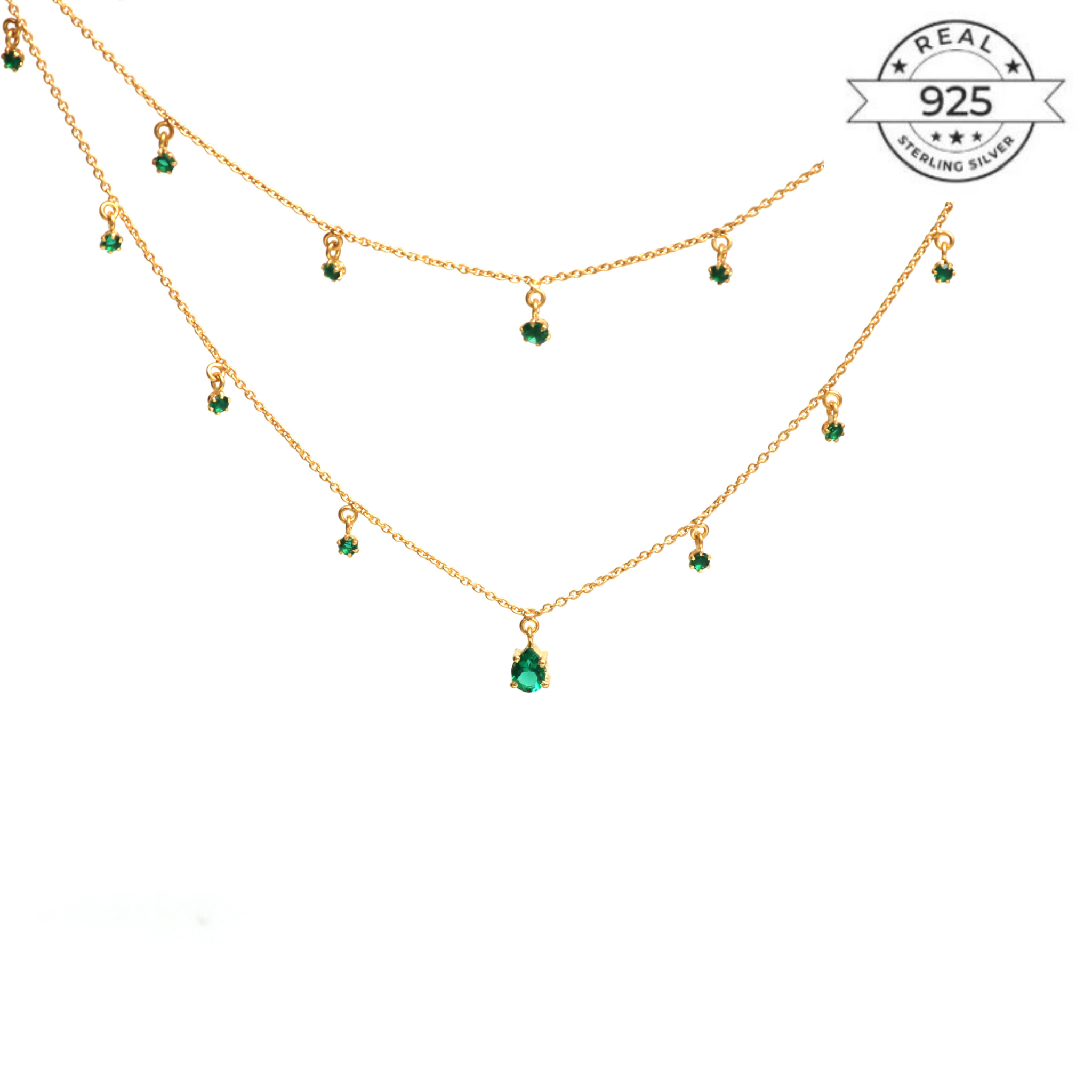 Layered Emerald Necklace Made of Fine 925 Silver