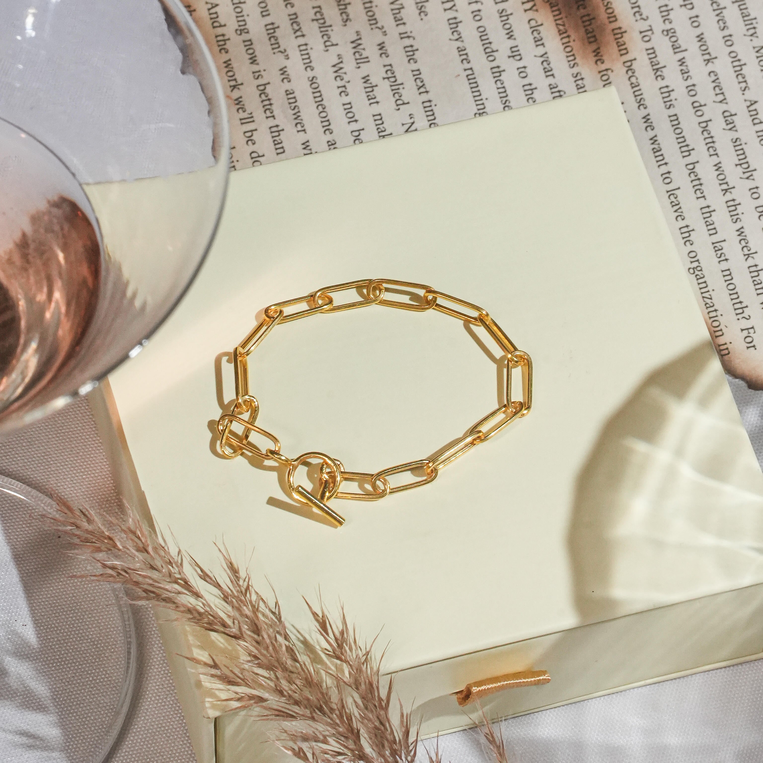 This piece of long,golden, ovular hooped 925 sterling silver bracelet ensures a minimal yet stylish look for an evening party