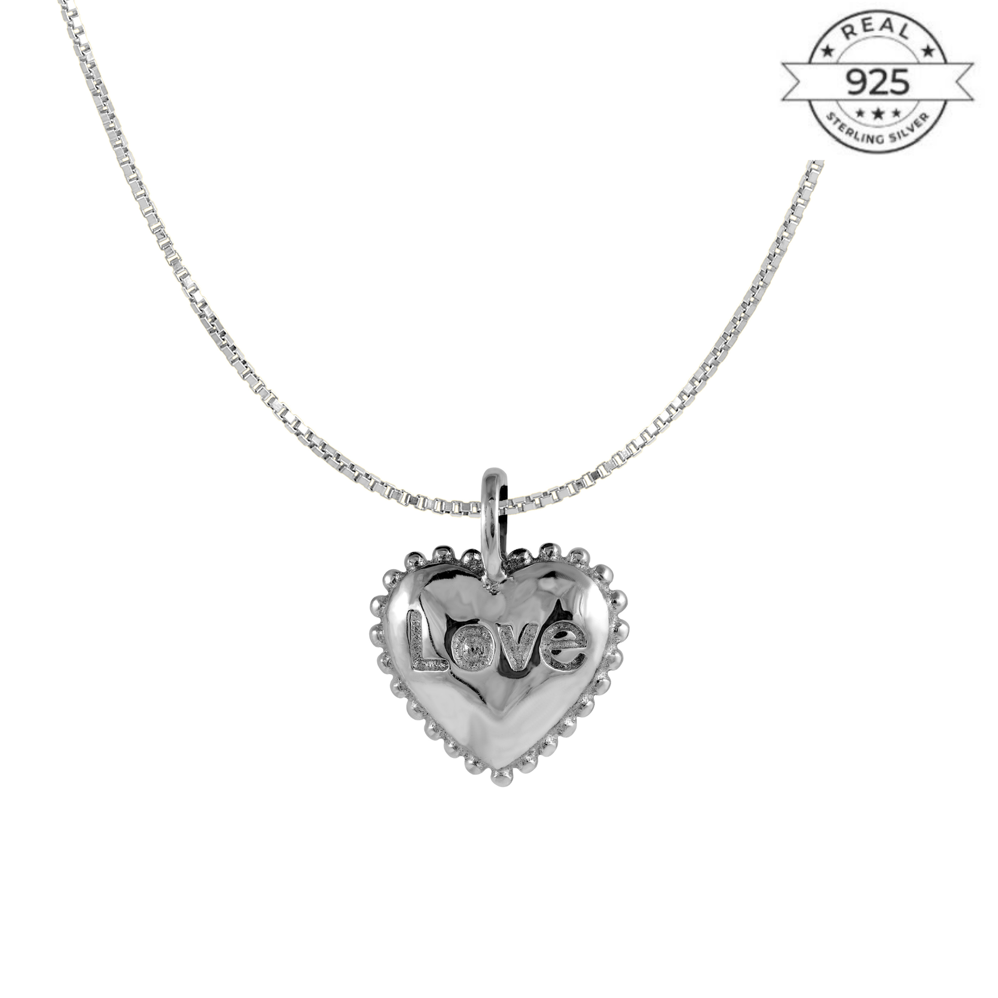 Love Engraved Heart Pendant Made of Fine 925 Silver