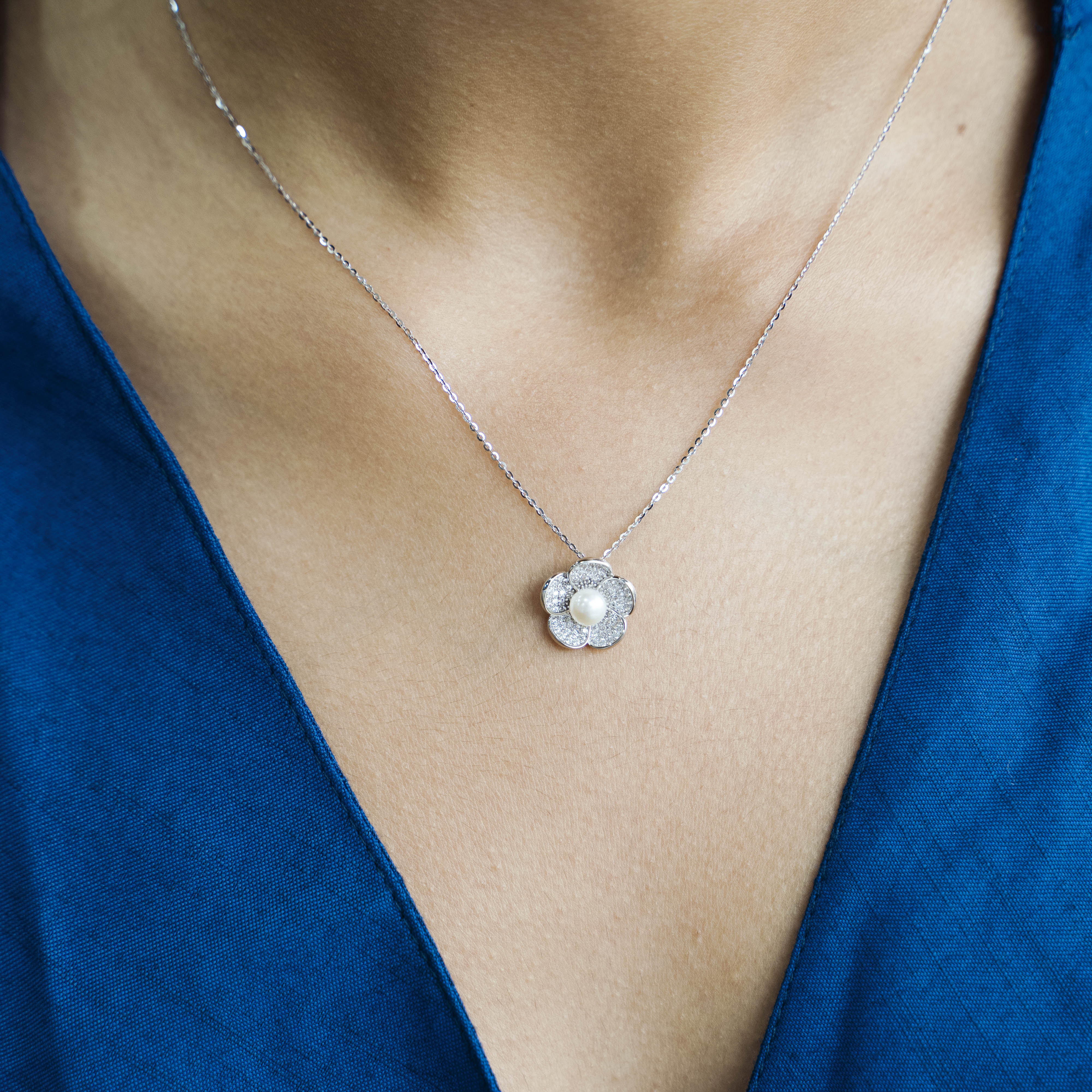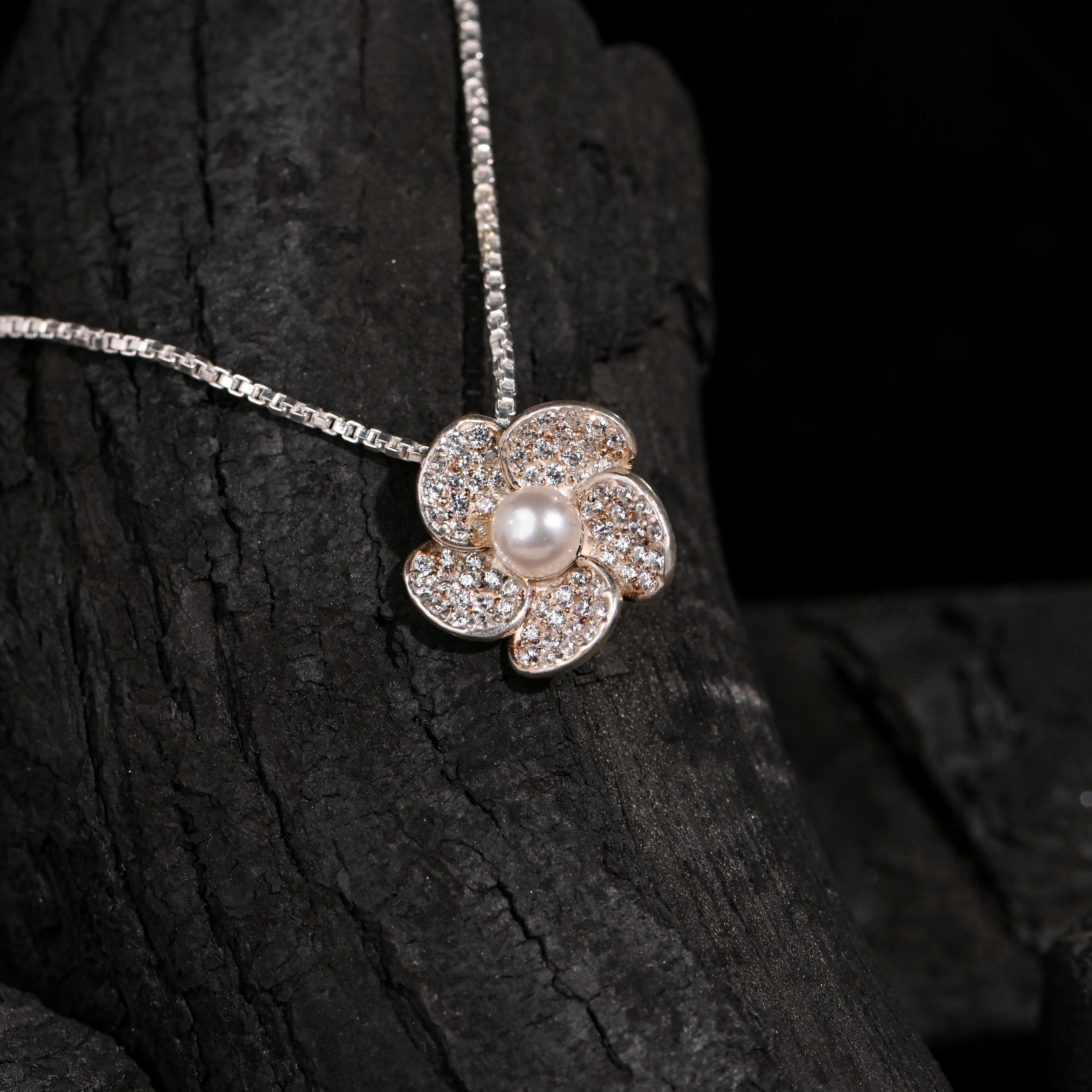 Capture the essence of elegance with our 925 Sterling Silver Pearl Flower Pendant. Featuring a lustrous pearl at its center, surrounded by a sparkling floral design, this exquisite accessory embodies the timeless beauty of pearls and the allure of sterling silver.