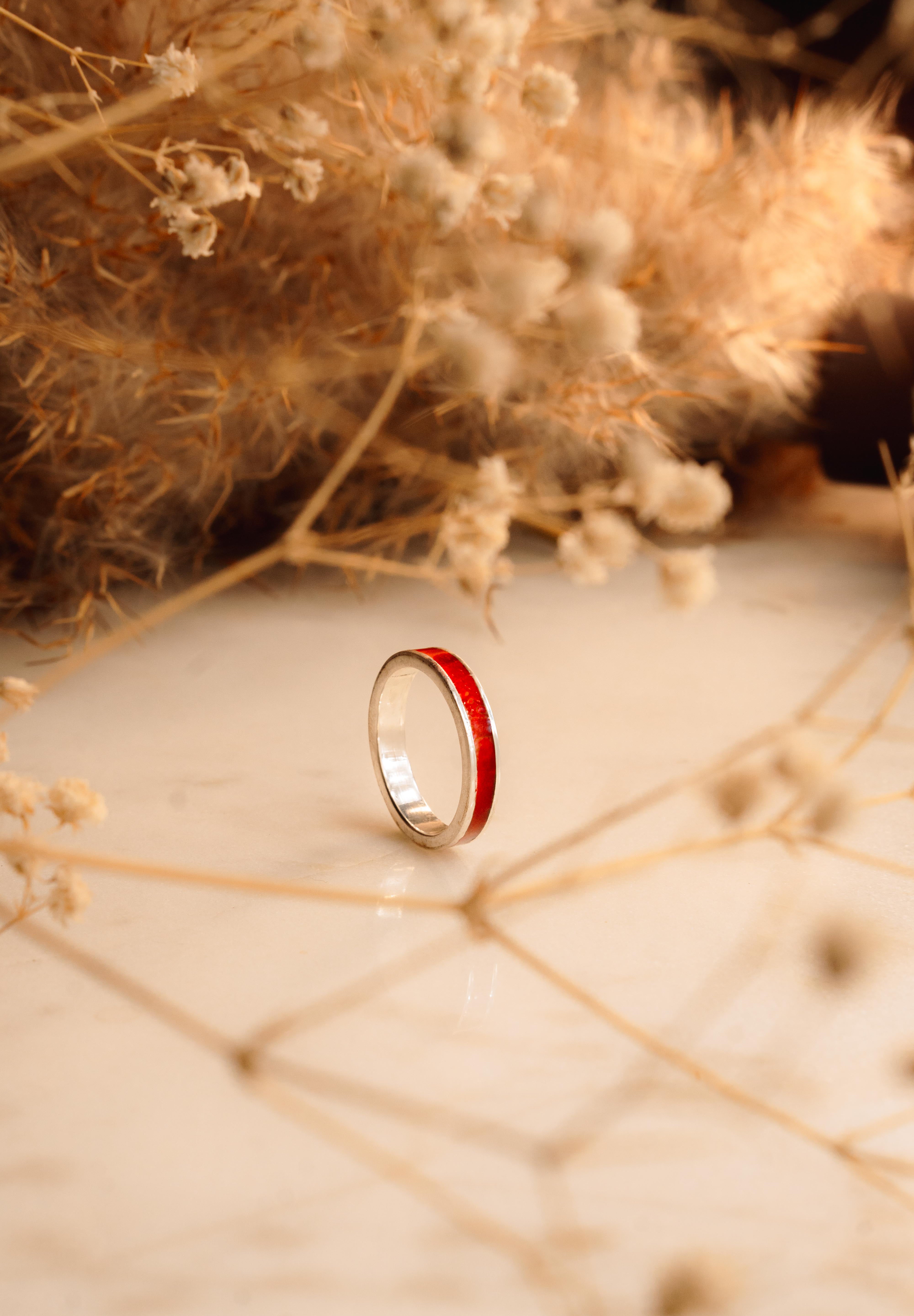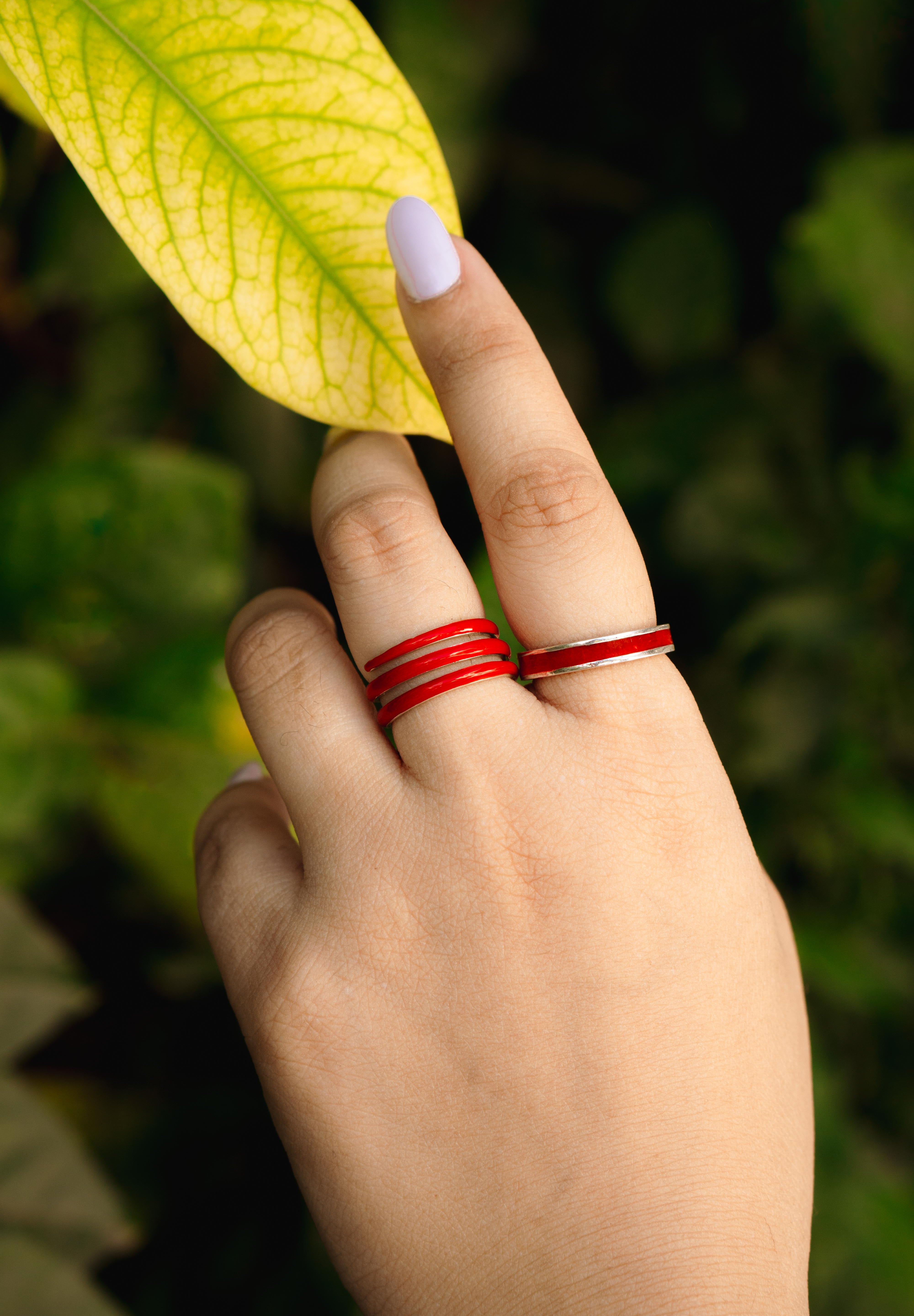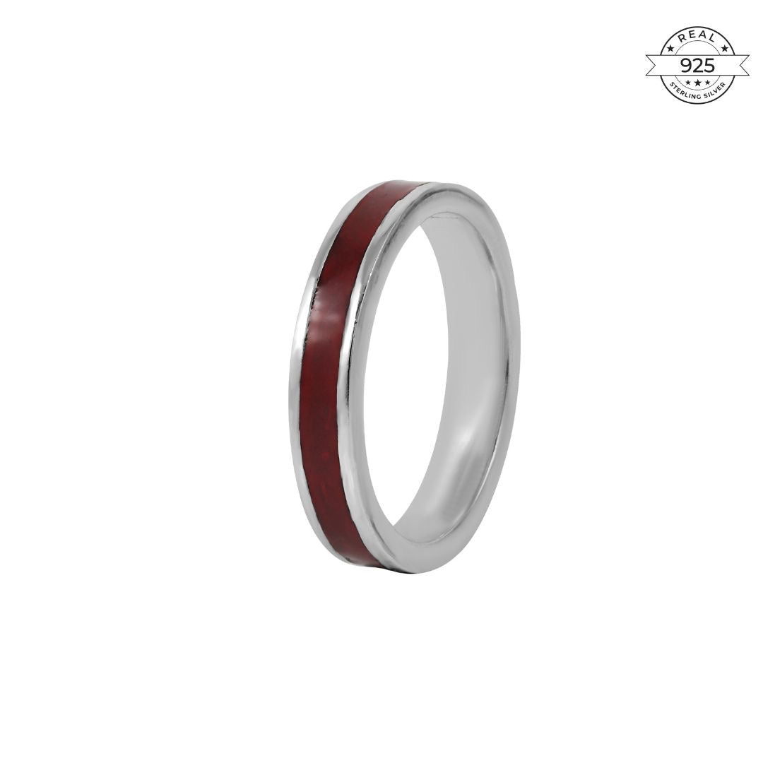 This 925 sterling silver band ring features a smooth enamel finish in red colour. Designed for simplicity and elegance, they add a subtle pop of colour to your outfit. Perfect for everyday wear or stacking, these rings offer a modern, minimal look while maintaining durability and style.