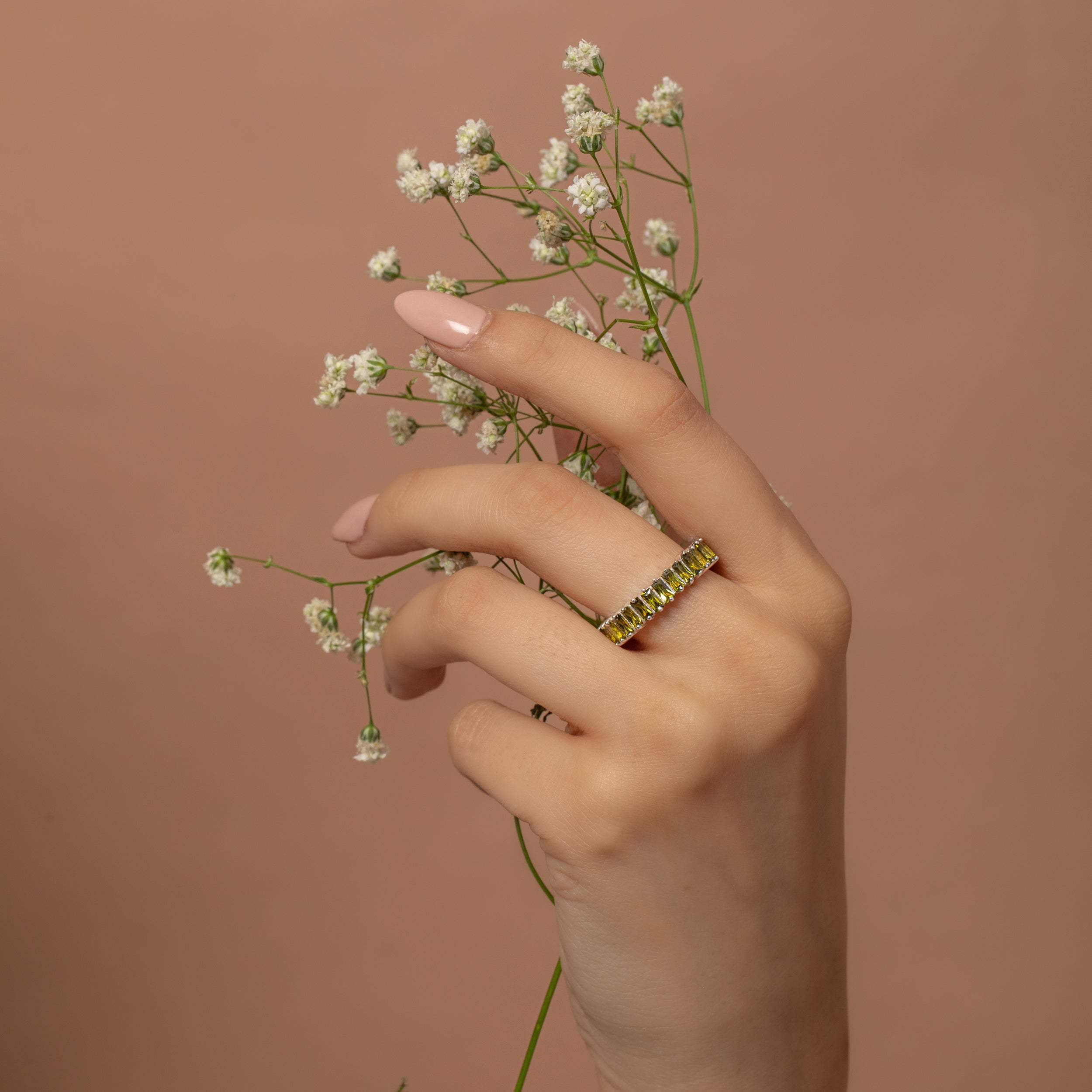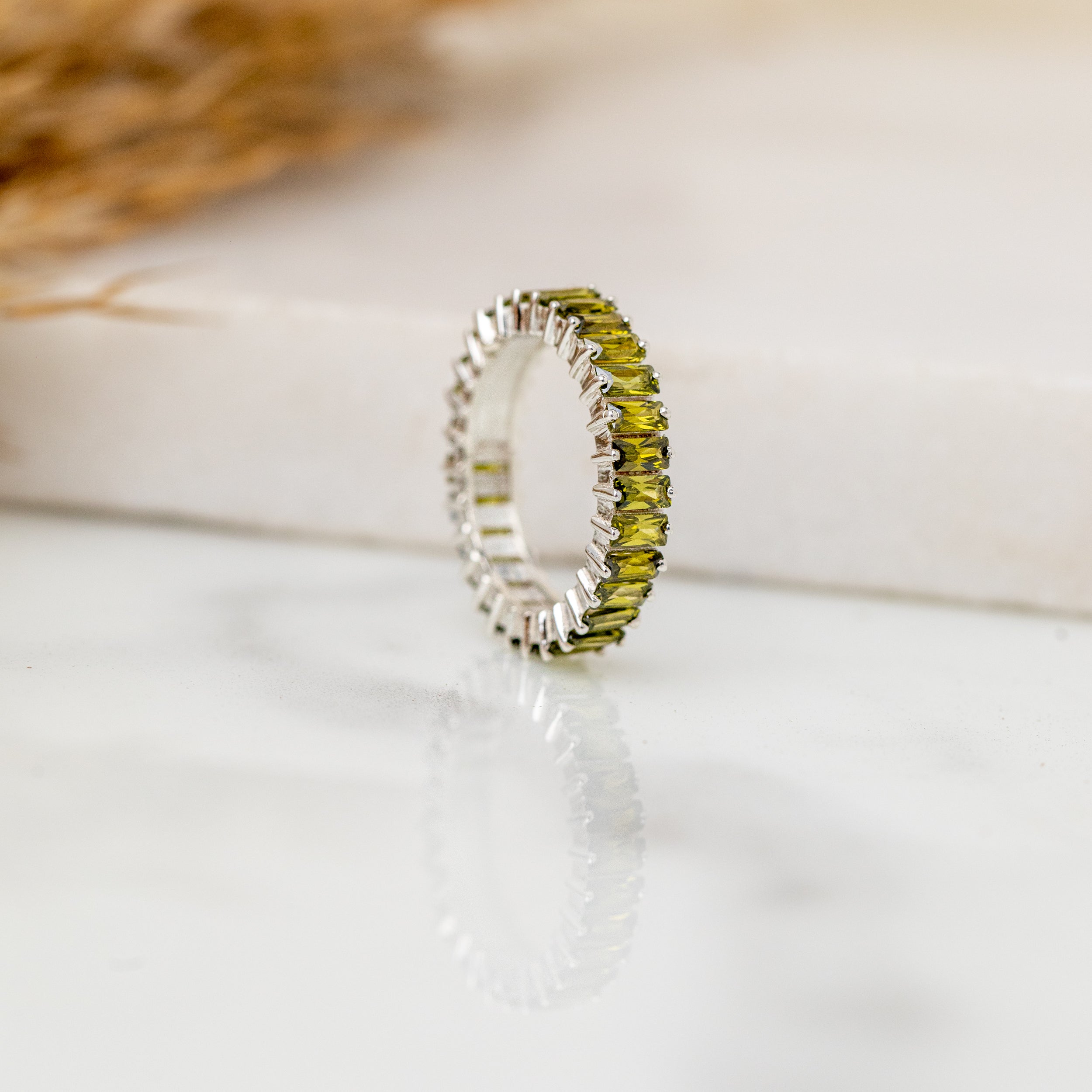 Sea Green Baguette Ring Made of Fine 925 Silver