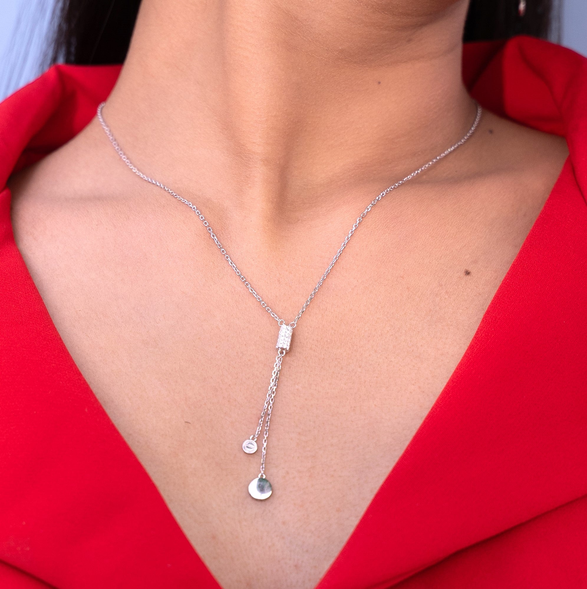 Sparkly Lariat Necklace Set Made of Fine 925 Silver