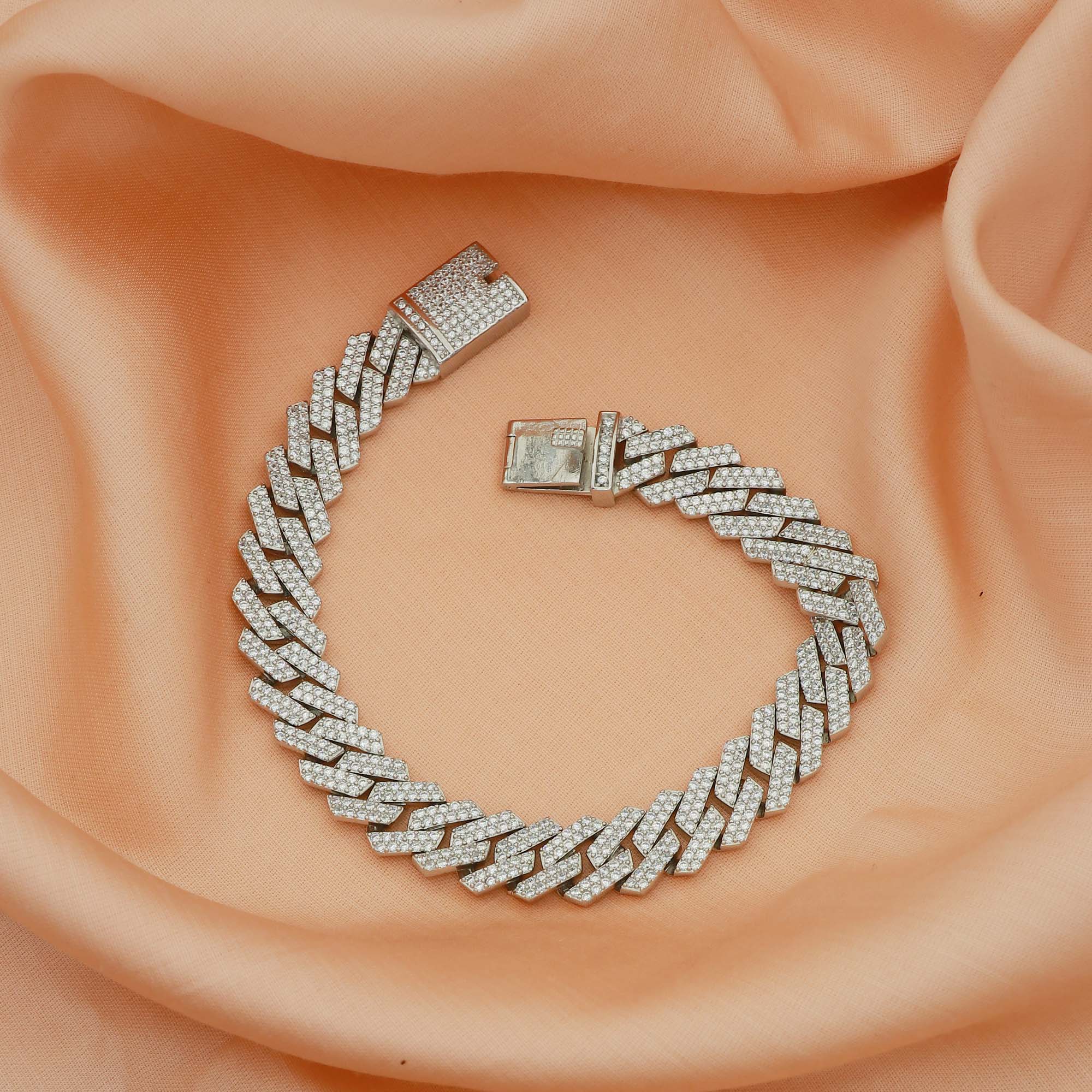 Studded Cuban Bracelet Made of Fine 925 Silver