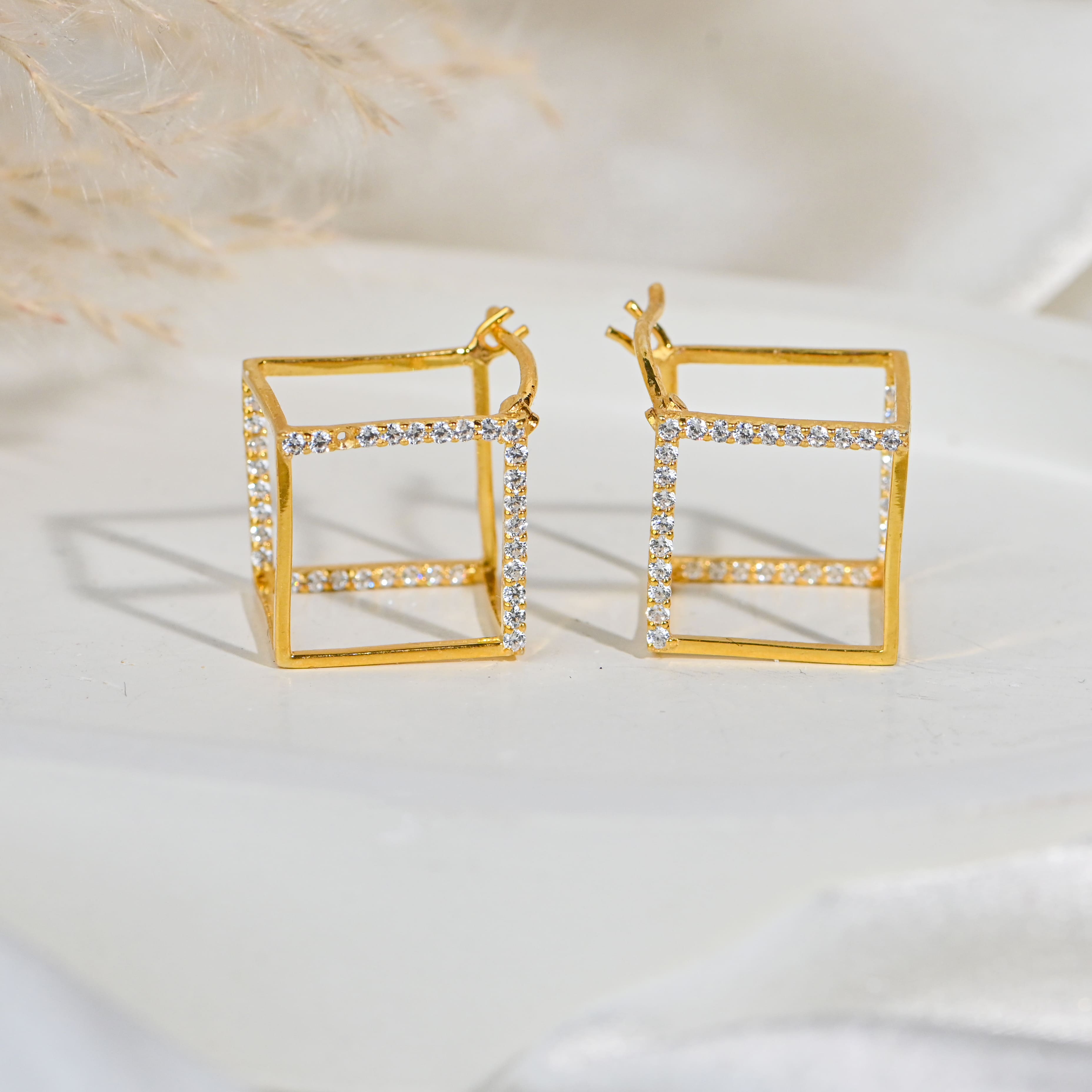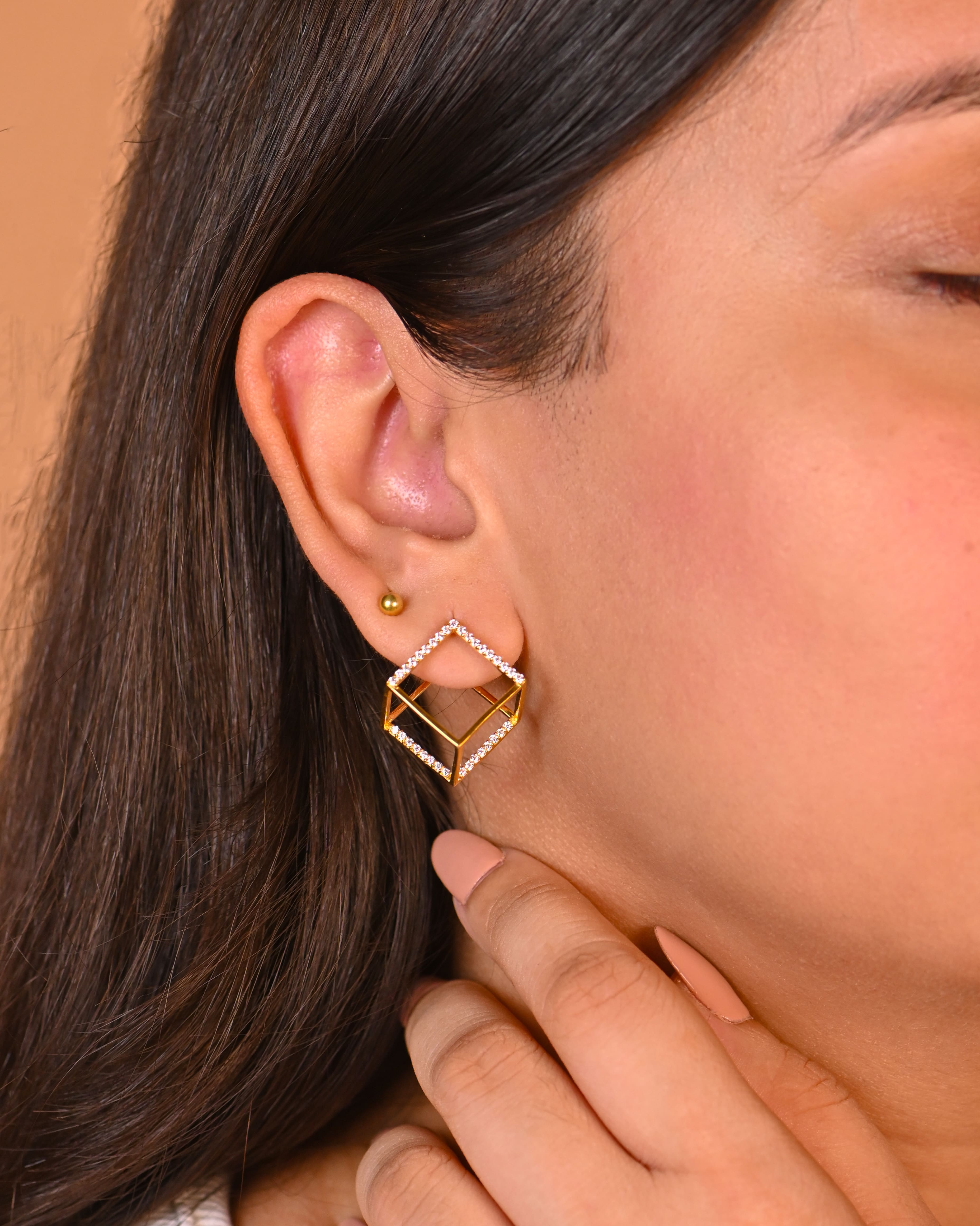 Simple yet versatile, the studded cube hoops in gold are sure to become a wardrobe essential. These hoops give a sleek look, add classic style to any outfit, day or night!