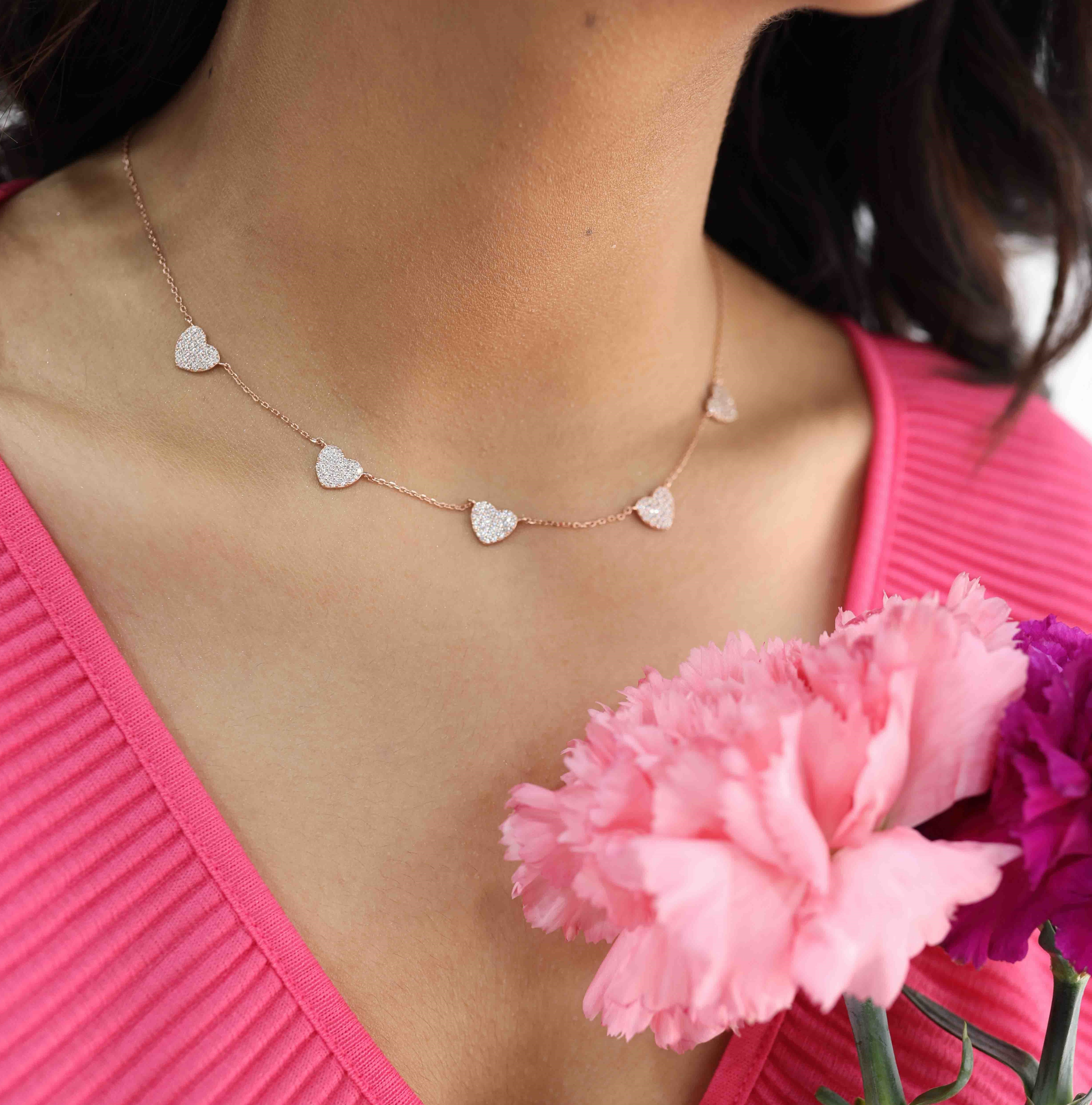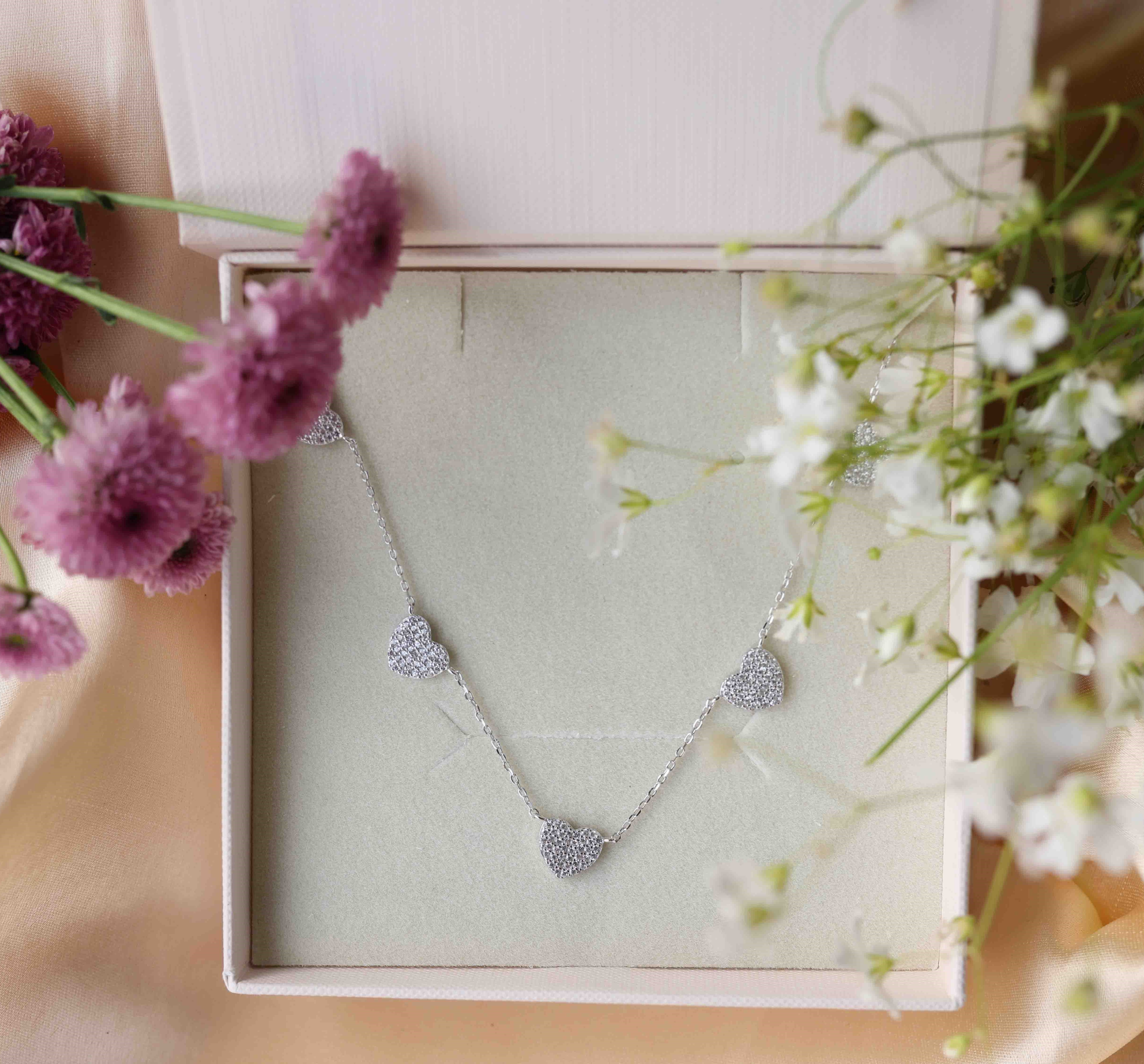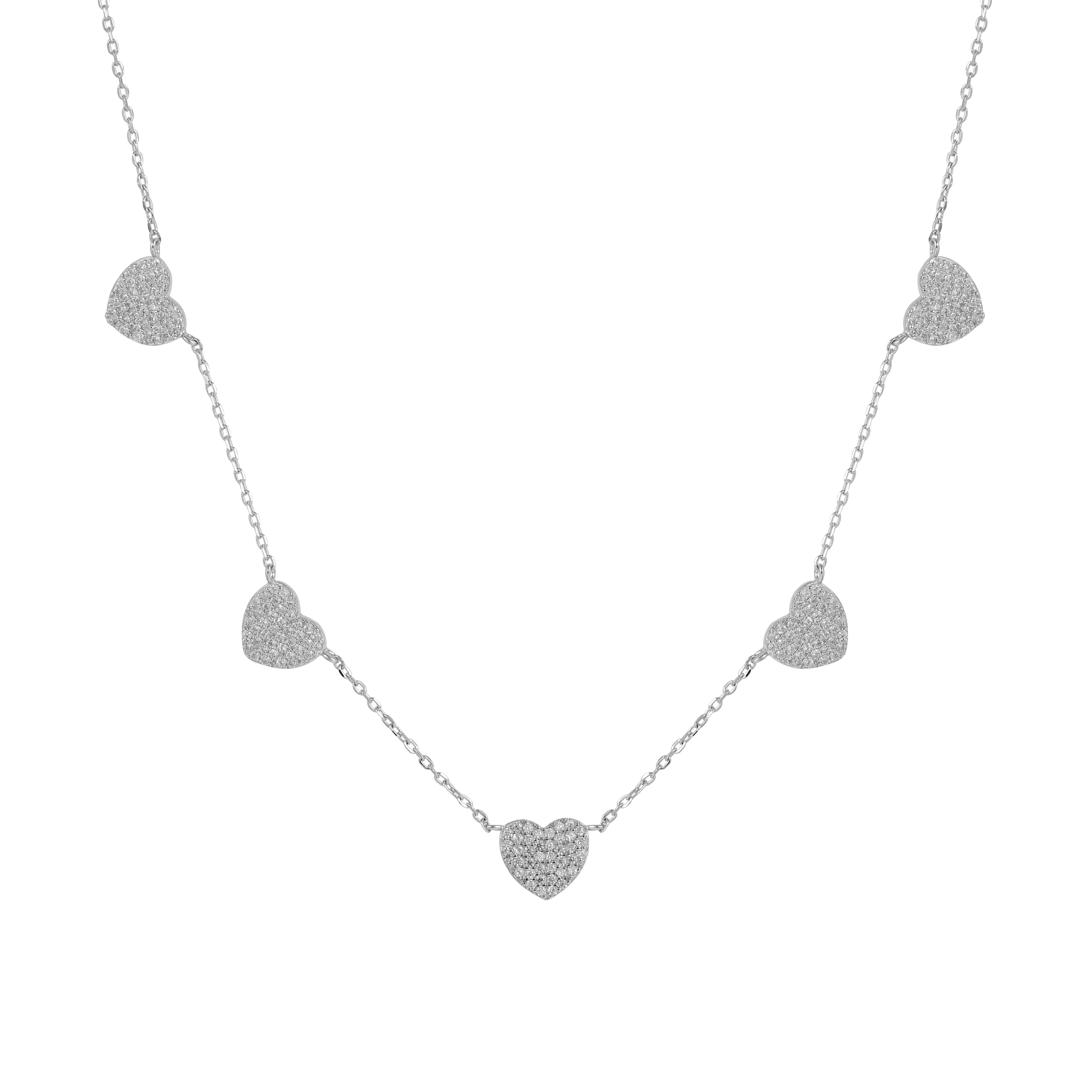Studded Heart Charms Necklace Made of Fine 925 Silver