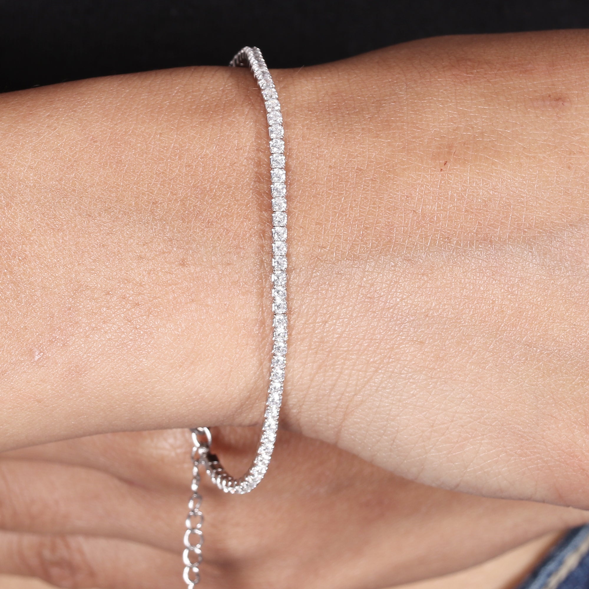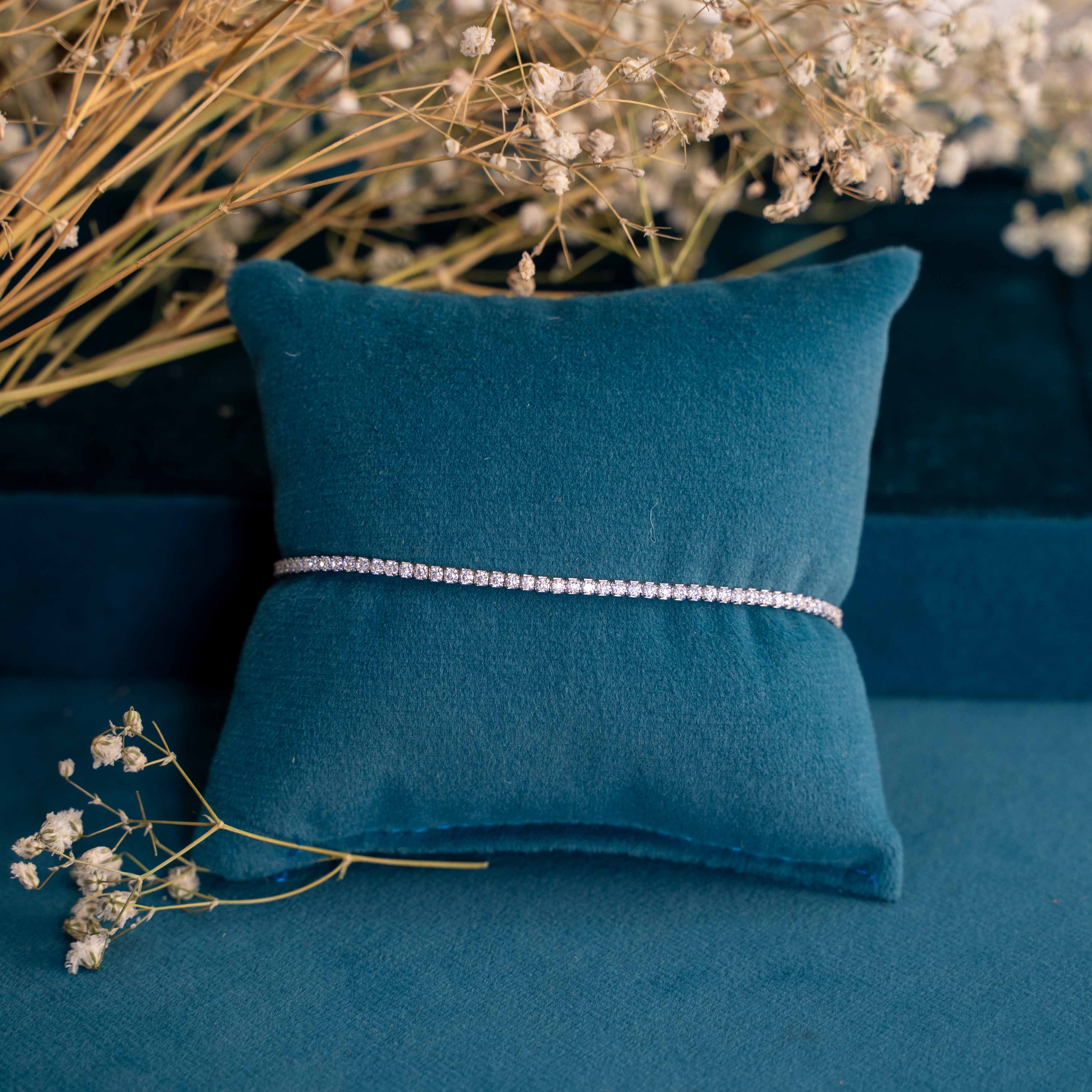 Introducing our White Tennis Bracelet, expertly crafted in 925 sterling silver. Adorned with small, glistening stones, this bracelet radiates elegance and timeless charm. Versatile enough for every event, from brunch to the office, it seamlessly complements your style, adding a touch of sophistication to any ensemble.